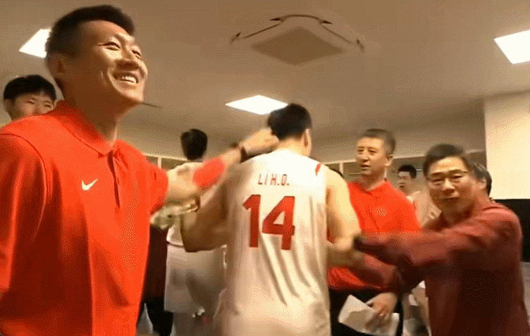 赛后,中国队在更衣室疯狂庆祝逆转,全队击掌,赵睿等队员非常兴奋,主教练郭士强十分开心,不过胡金秋安静地坐在一旁。