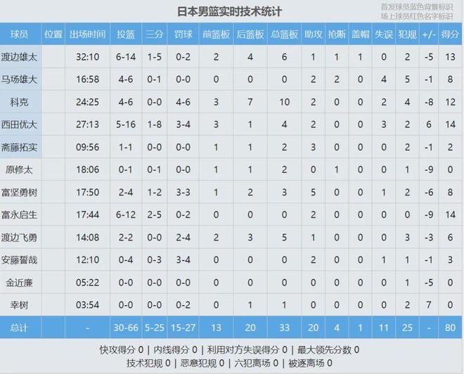 第二节中国男篮进攻有所起色,单节三分球8中2,贺希宁和李弘权在外线开张。张镇麟攻防两端迷失,半场3中0仅得0分0板0助1犯规。日本外线也不准,两队上半场三分都是11中2。但日本男篮两分球20中15,命中率高达75%。
