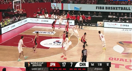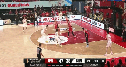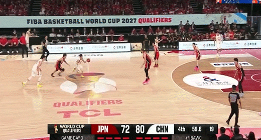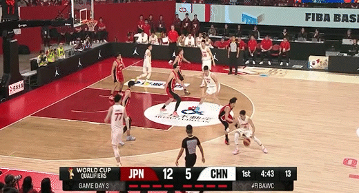 渡边雄太单打张镇麟虚晃转身中投打板命中!中国男篮24-37日本