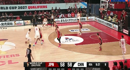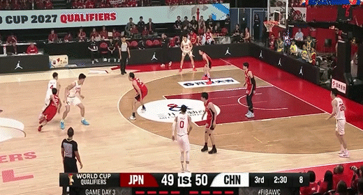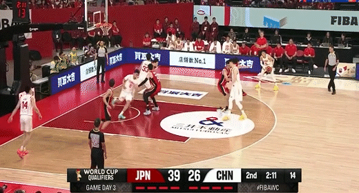 高诗岩借掩护三分追平比分!中国男篮49-49日本
