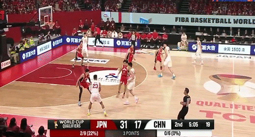 李弘权底角三分命中!中国男篮31-43日本