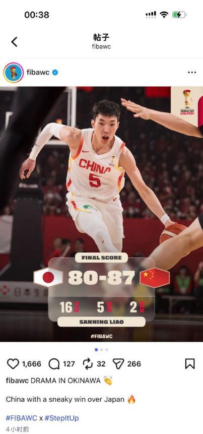 更让人无语的是,国际篮联直接下场在fiba官方写着:“中国男篮从日本偷走一场胜利”,引发评论区翻车。目前国际篮联已经把这个标题改成文案改成:中国男篮在下半场翻盘拿走了胜利,这也写法赛后引起了巨大争议,很多球迷都诧异这竟然是官方的描述。
