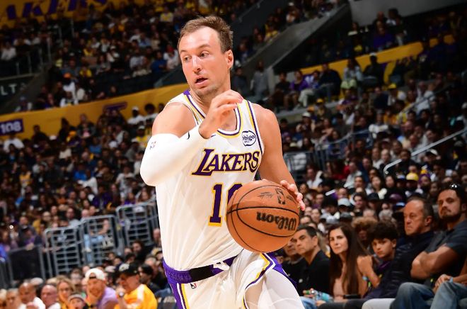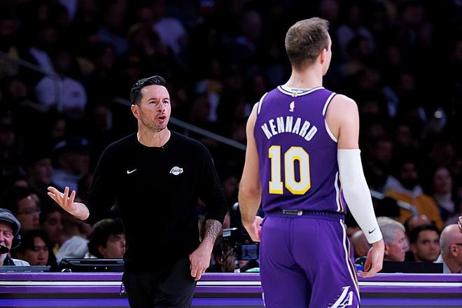 本场比赛中,刚刚在交易截止日前从亚特兰大老鹰加盟湖人的后场新援卢克-肯纳德(Luke Kennard)还是保持了自己的出色手感。肯纳德全场出场25分47秒,投篮10中4,三分线外5中3,得到了11分1篮板5助攻1抢断1盖帽的数据,还有1次失误,正负值为+17。肯纳德在进攻端还是展现出了自己超强的外线投射能力,他也是抓住了不多的机会得到了大量的分数。除此之外,肯纳德在传球和组织方面的同样是非常出色的,同样是在这方面起到了关键的作用。甚至肯纳德在防守端的表现也没有那么糟糕,也没有出现什么太大的问题。肯纳德算是打出了非常全面的表现,他在球队第二阵容中的作用非常突出,他也为球队的胜利做出了不小的贡献。