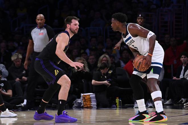 前一场强强对话击败尼克斯后,湖人队迎来与森林狼队的关键卡位战,赛前两队分列西部第四与第五,两队仅差1个胜场。