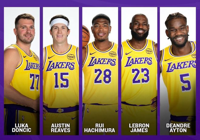 再看阵容数据,画面更惊人:湖人目前这套詹姆斯+东契奇+里夫斯+艾顿+八村垒的首发五人组,是2007-08赛季有完整数据统计以来,詹姆斯搭档过的最差五人组。这套阵容同场时净效率为-3.9,是19年来最差(只统计至少同场10场、20分钟以上的组合)。