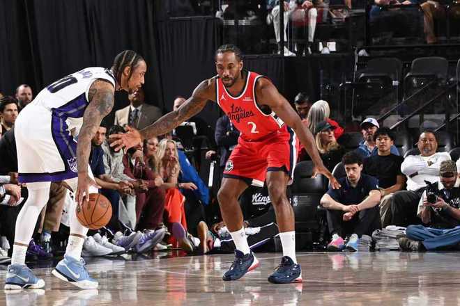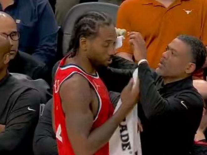 莱昂纳德被德罗赞撞伤头部下场治疗。