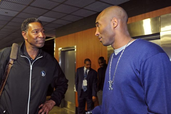 “第三节刚开始的时候,科比在底线持球突破,莫里斯-皮特森已经完美地卡住了他的突破路线,”米切尔回忆道,“可科比突然停下脚步,连续三次虚晃,接着一个大幅度转身,在完全背对防守球员的情况下后仰跳投——球空心入网,唰的一声落袋。”