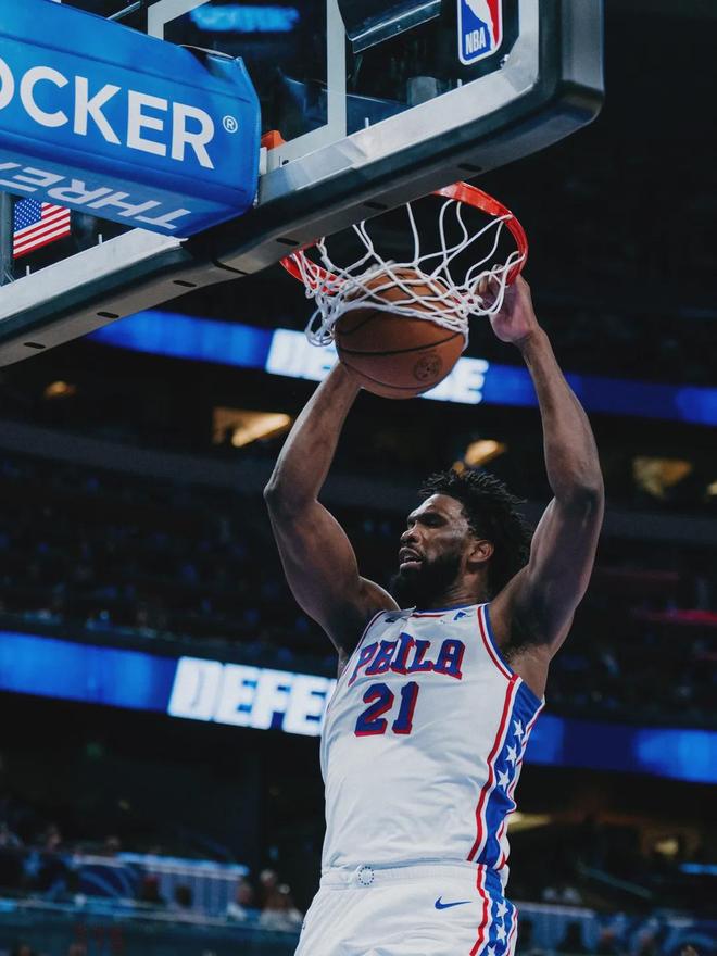 恩比德本赛季因伤打了24场比赛,场均出战30.3分钟,得到24.5分7.3篮板3.6助攻0.6抢断1.1盖帽3失误,三项命中率:47.9%,26.3%,86.2%。真实命中率59%,联盟第127位。最近三场比赛,恩比德场均31.7分10篮板5.7助攻。