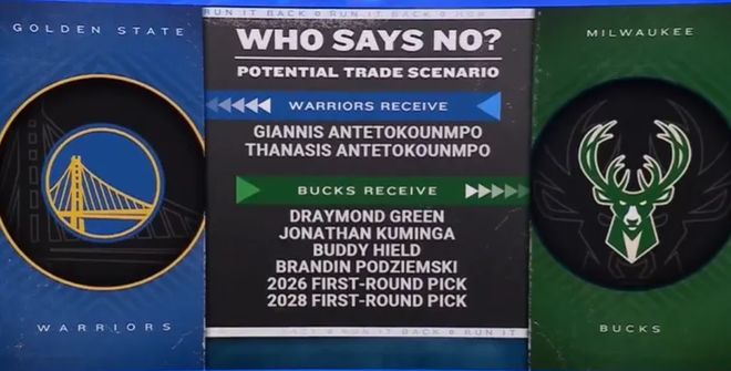 帕金森则在ESPN的节目中分析勇士队可能会以:德雷蒙德-格林、库明加、希尔德、波杰姆斯基、2026年首轮签、2028年首轮签去换扬尼斯、萨纳西斯,但帕森斯最后也表示这个代价很高,勇士队很可能会放弃。