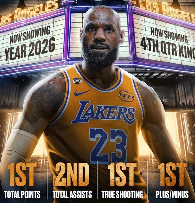 不过,根据目前詹姆斯的表现,退役或许还很远,26年至今,詹姆斯场均可以砍下26.6分7.6板7.6助1.2断,真实命中率高达64%,尤其是末节关键时刻,詹姆斯的表现更是逆天,26年末节总得分、真实命中率和正负值均排名全联盟第一,真是越老越妖了!赛季至今,湖人以28胜17负的战绩,排名西部第五;骑士以28胜20负,同样位列东部第五。