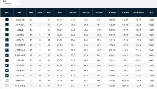 CBA最新排名出炉!广厦杀回第一,山东升至第4,辽宁新疆全部翻车