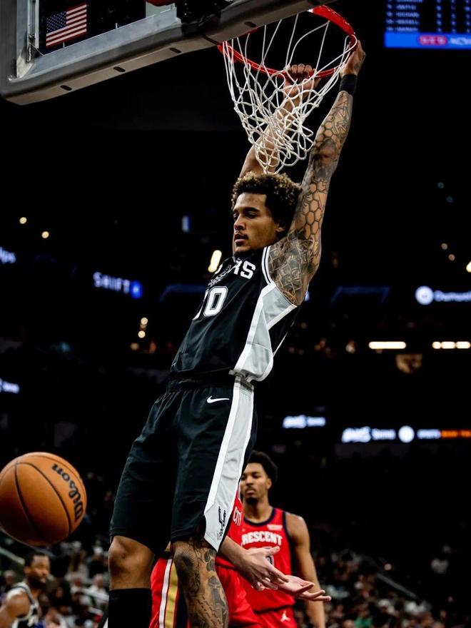 他的进攻高阶数据OBPM(进攻正负值)跌至骇人的-4.0,意味着当他在场时,球队进攻效率会大幅崩塌。马刺不是没给机会,但当他与文班亚马同时出场时,球队百回合净负对手7.7分,这让他彻底失去了首发可能。