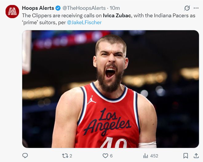 根据BR记者杰克-费舍尔的报道,在詹姆斯-哈登被交易到骑士队后,快船队的中锋祖巴茨已经收到了多支球队的报价。其中步行者对祖巴茨尤为的感兴趣,快船队依旧在评估祖巴茨的价值。
