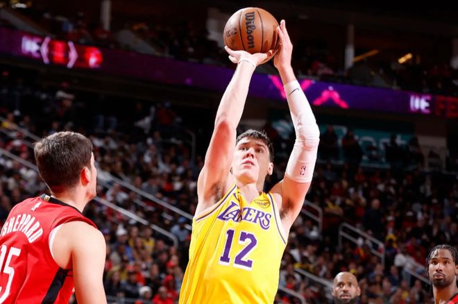 本场比赛中,湖人的替补锋线新星杰克-拉拉维亚(Jake LaRavia)的表现令人刮目相看。拉拉维亚全场出场12分13秒,投篮2中1,罚球6中5,得到了7分4篮板3抢断的数据,其中还包括了3个前场篮板,还有3次失误和1次犯规,正负值为-1。拉拉维亚在进攻端展现出来很强的前场篮板争抢能力,他也是靠着自己的积极性拿到了不少罚球的机会并且得到了一些分数。拉拉维亚在防守端同样是活力四射,同样是靠着自己的积极性给球队提供了不少的帮助和支持。至少在本场比赛中,出场时间不多的拉拉维亚算是很好地扮演了搅屎棍的角色,在第二阵容中起到了关键的作用,他也是为球队的这场胜利做出了不小的贡献。