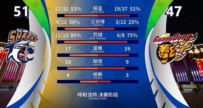 第二节:上海久事 51:47 广东东阳光
