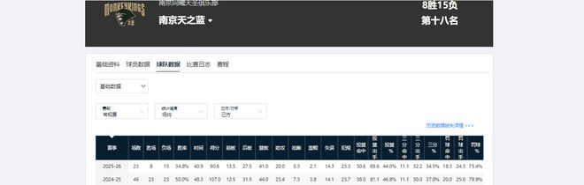 上赛季常规赛,新疆男篮取得32胜14负,胜率为69.6%;本赛季第一阶段过后,他们的成绩为9胜14负,胜率仅为39.1%,该胜率相比上赛季下滑了30.5个百分点。