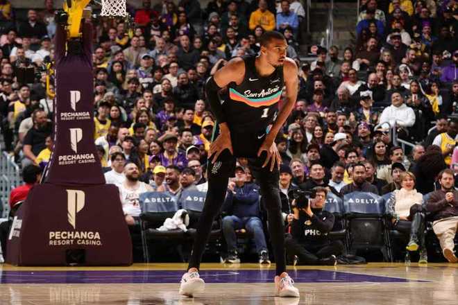 面对缺少詹姆斯、东契奇与里夫斯三巨头的残阵湖人对决,甚至是艾顿也缺席,文班亚马内线对决海斯与克勒贝尔等球员,可谓是轻松碾压予取予求。