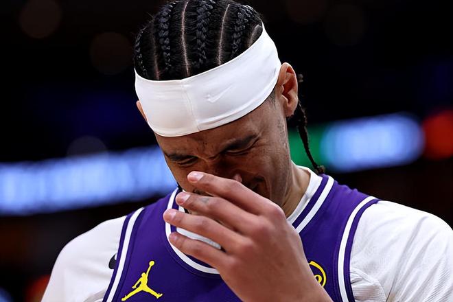 本场比赛中,湖人虽然取得了比赛的胜利,但是球队的替补中锋贾克森-海斯(Jaxson Hayes)的表现其实是非常一般的。海斯全场出场13分37秒,期间没有完成1次投篮,罚球4中1,仅靠罚球得到了1分外加3篮板1助攻1盖帽的数据,还有1次犯规,正负值为+6。海斯在进攻端没有展现出自己的篮下得分能力和终结能力,他在罚球线上的稳定性也差了一点,他在进攻端完全没有起到任何作用,而且他在防守端的表现也是非常普通的。海斯不仅在进攻端没有发挥出自己的特点,他在防守端的表现也是非常一般的,也没有办法在防守端起到更大的作用。也是因为整体表现非常平庸,海斯的出场时间也是比较有限的,而先发中锋德安德烈-艾顿(DeAndre Ayton)则是得到了大量的出场时间。