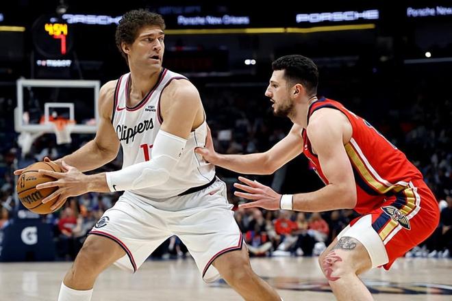 本场比赛中,快船的先发中锋布鲁克-洛佩斯(Brook Lopez)继续着自己的灾难级别表现。洛佩斯全场出场28分50秒,投篮9中2,三分线外3中0,罚球6中2,得到了6分3篮板2助攻1盖帽的数据,还有3次失误和5次犯规,正负值为-8。洛佩斯又一次全方位被对手打爆了,他在进攻端毫无手感,没有命中一记外线投篮,没有展现出自己的投射能力,在对手内线的威胁度也非常有限。最关键的是,洛佩斯在防守端的表现实在是太糟糕了,他在篮板保护方面完全起不到作用,他在移动速度方面的短板也是被放大了,他在防守端也是被对手各种打爆,还出现了各种犯规,显得极其狼狈。很显然,洛佩斯在场上的效果一塌糊涂,满满的都是副作用,然而即使是在这种情况下,他还是得到了接近30分钟的出场时间,实在是让人感到无法理解。