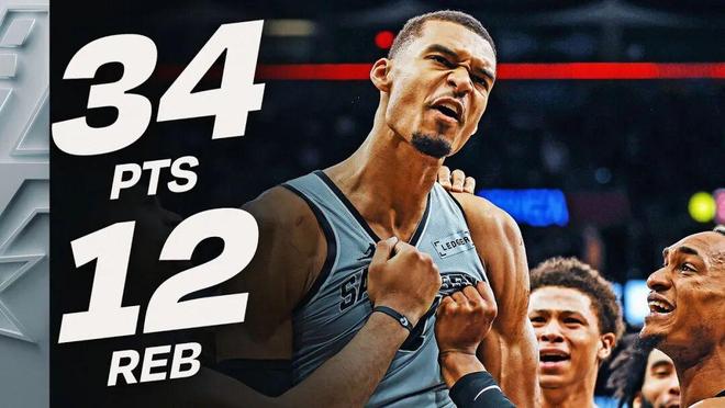全场比赛,文班亚马一共出战了35分钟,投篮20中10,三分7中2,罚球12中12,拿下34分12篮板3抢断1盖帽。