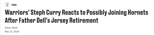尽管库里追随父亲、加盟黄蜂的概率并不大,但并非完全没有可能。这位四届总冠军得主,和勇士的合同只剩最后一年。
