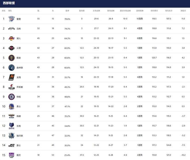 西部最新排名如下