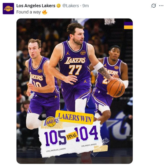 北京时间3月22日,NBA常规赛,湖人以105-104击败魔术拿到9连胜。这场比赛卢卡-东契奇整个下半场都在梦游,下半场他13中2只拿到9分各种打铁让魔术反超,最终时刻还是肯纳德的绝杀拯救了东契奇,让东契奇连续9场比赛30+的纪录没有吞下里程悲。
