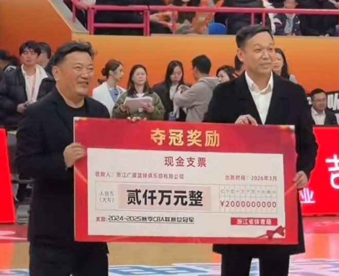 在上赛季广厦夺冠之后,这算是他们历史性的时刻了,因为在整个CBA这么多年,只有广厦拿下过一次CBA总冠军,浙江还没有。而最近浙江省体育局正式向CBA冠军浙江广厦男篮颁发2000万冠军奖金。看到这样的奖金,肯定是让人开心的。