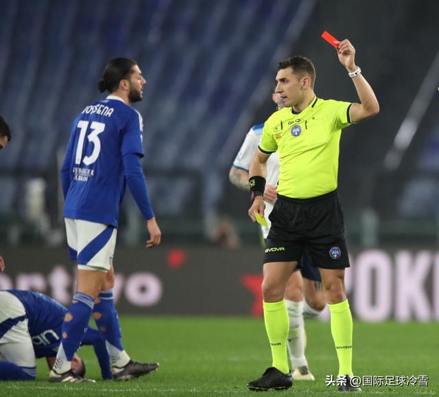 赛季至今,科莫拿到30张黄牌和2张直接红牌,按统计习惯,1张直红算3张黄牌的话,那么科莫是意甲“得牌榜”的第一位。