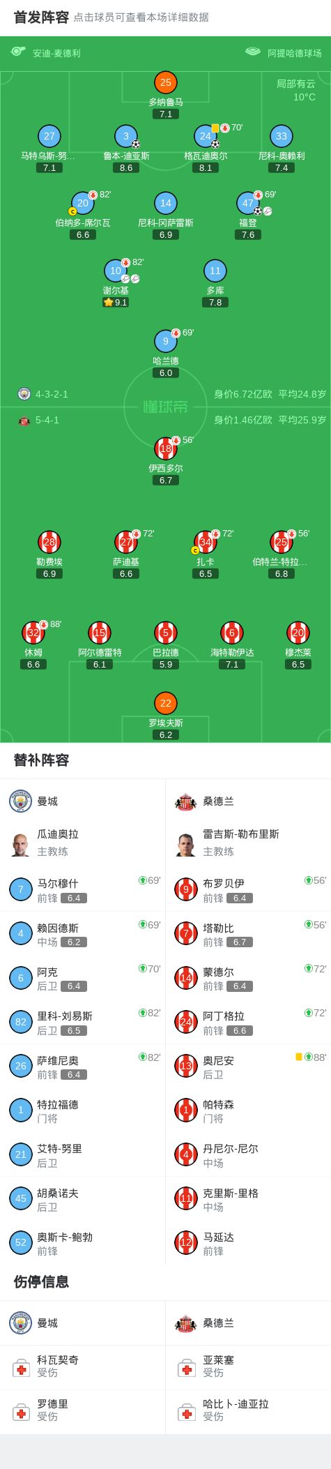 北京时间12月6日英超联赛 第15轮,曼城主场对阵桑德兰。上半场,鲁本-迪亚斯世界波破门,格瓦迪奥尔头球建功;下半场,谢尔基插花脚助攻福登头球破门锁定胜局。比赛尾声阶段,奥尼安凶狠放铲努内斯,主裁判观看VAR后出示红牌。最终曼城3-0桑德兰,积分榜落后阿森纳2分。