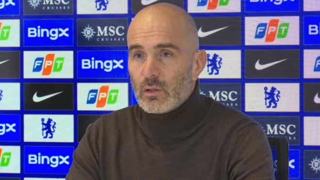 在英超第18轮主场被逆转1-2负于阿斯顿维拉之后,因为累积黄牌停赛只能在看台上观战的切尔西主教练马雷斯卡出席了新闻发布会。