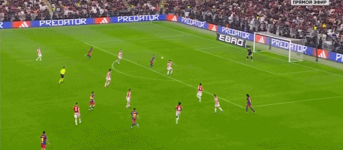 第5分钟,拉菲尼亚过掉乌奈-西蒙后传中,巴尔德吉没有顶到球
