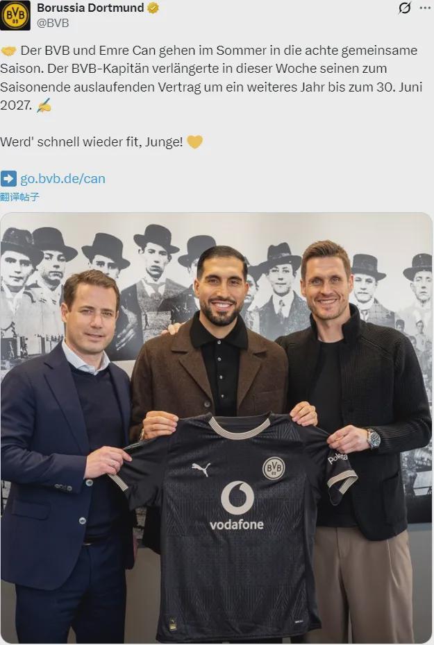 官方:尽管左膝十字韧带撕裂,但多特蒙德还是宣布和埃姆雷詹签下了一份2027年到期的新合同。