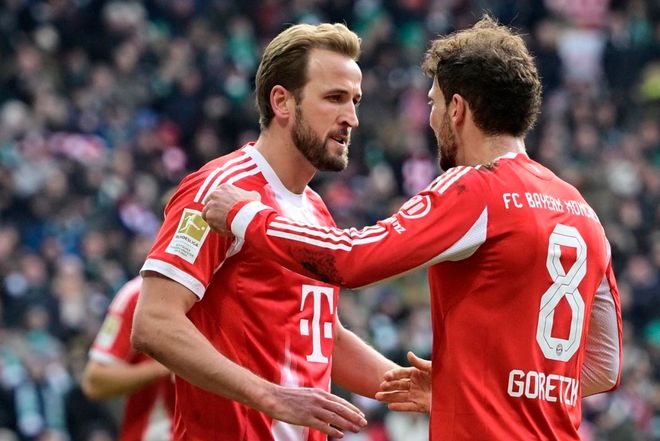 比赛刚开始不久,格纳布里在禁区内抢点的时候,被对手放倒,但裁判没有任何表示。第20分钟,卡尔在禁区内连续过人,最后被踢倒,裁判判罚点球。哈里-凯恩主罚点球,他稳稳罚进,帮助拜仁取得领先。第25分钟,拜仁再次进球!依然是哈里-凯恩的进球,他外围远射,皮球弹地后钻入球门。32岁的凯恩22场联赛轰入26球,太强了!